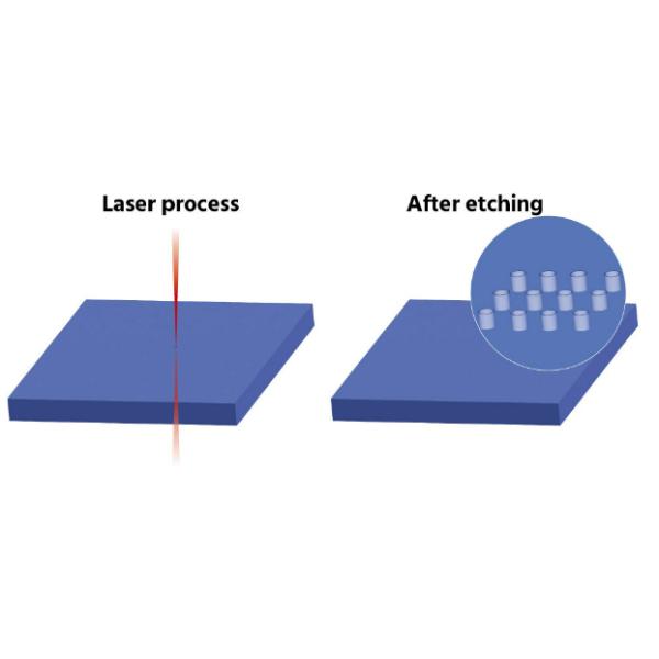 The formation of through hole vias is crucial for an interposer. TGV substrates are produced using a combination of laser and etching technology. The laser introduces structural modifications in the glass, making it weaker in predefined areas, which allows for faster etching rates in these modified regions compared to the surrounding material. This process is known as laser-induced etching. It does not create any cracks in the glass and enables the creation of both blind and through vias in the glass. Advanced laser processing and etching techniques allow for the creation of very high aspect ratios.